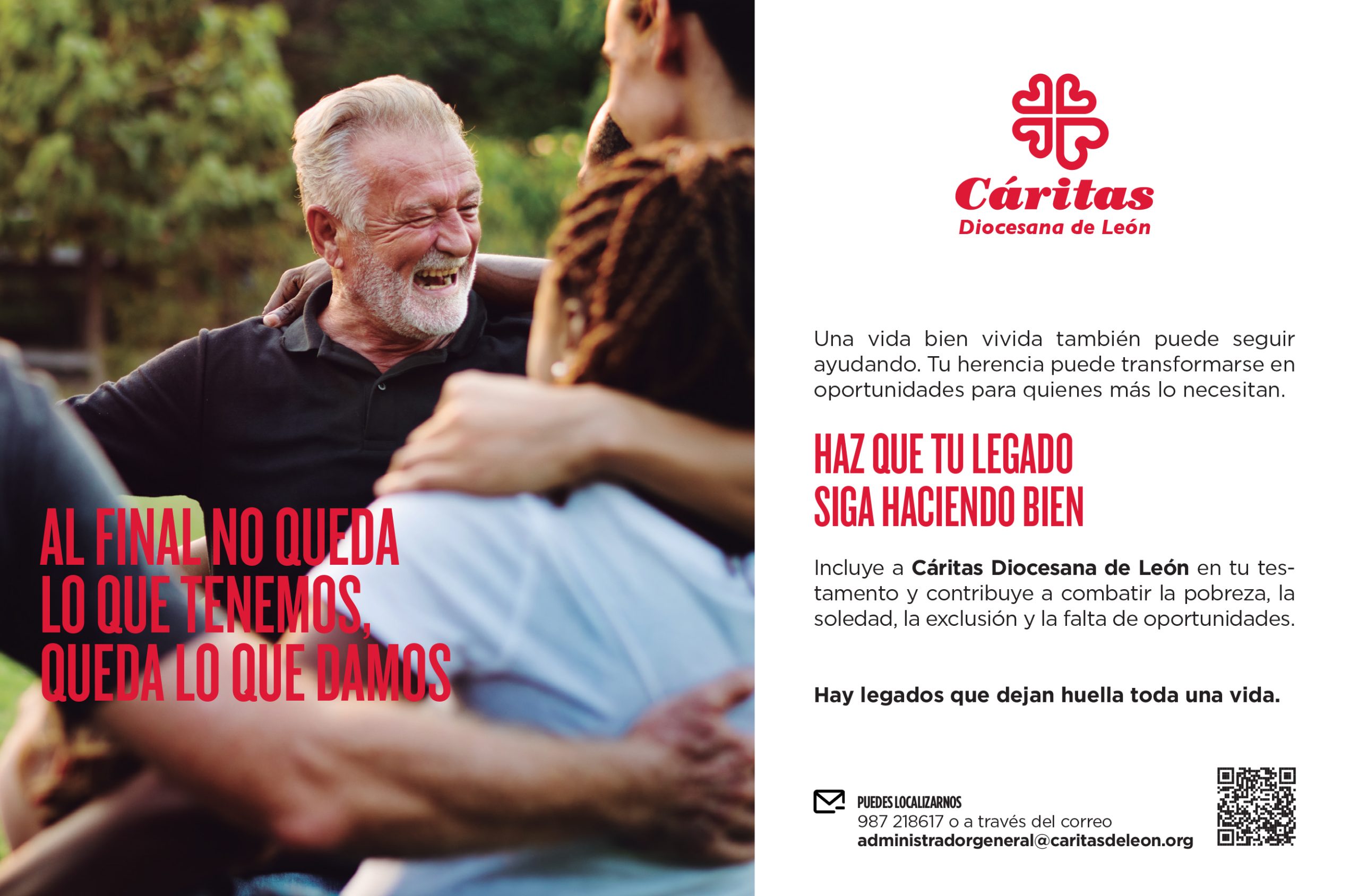 Desde Cáritas Diocesana de León ponemos en marcha la campaña Herencias y Legados, una iniciativa que invita a reflexionar sobre una forma de solidaridad que trasciende el tiempo: convertir una parte de nuestra herencia en oportunidades para quienes más lo necesitan.